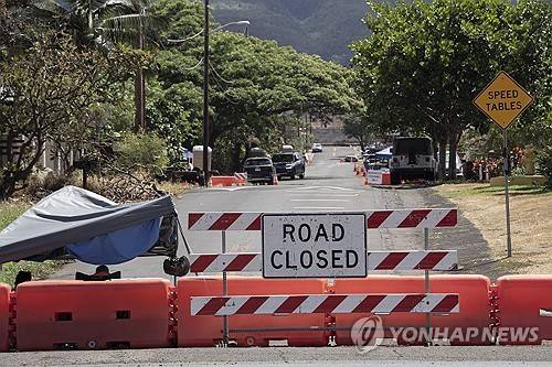 A checkpoint set up by the Hawaii National Guard is pictured on Kaniau Road, Sunday, Sept. 24, 2023, in Lahaina, Hawaii. Kaniau Road of Zone 1C will be the first zone to be cleared for residents to reenter following Maui's deadly wildfire, starting Monday, Sep. 25. (AP Photo/Mengshin Lin)