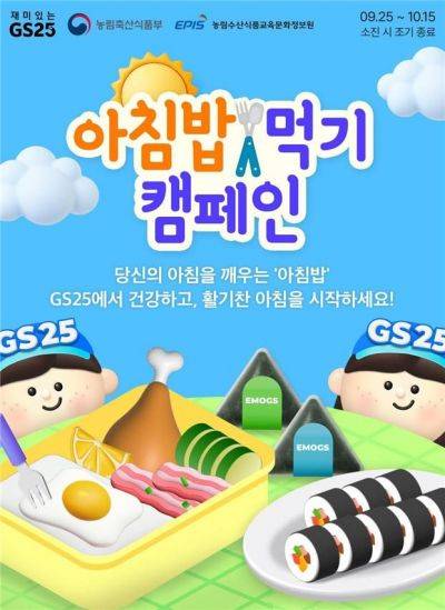농식품부-GS25, '아침밥 먹기 캠페인'…김밥·도시락·삼각김밥 등 500원 할인