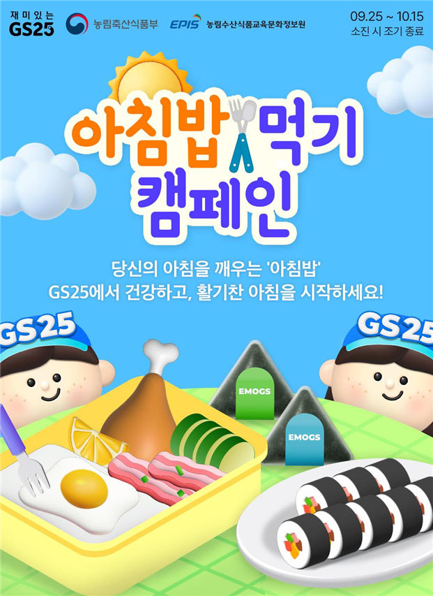 행사 기간에 전국 약 1만7000개 GS25 편의점에서 아침 6~9시 김밥·도시락·삼각김밥 등 인기 쌀가공식품 8종을 500원 저렴하게 판매한다.