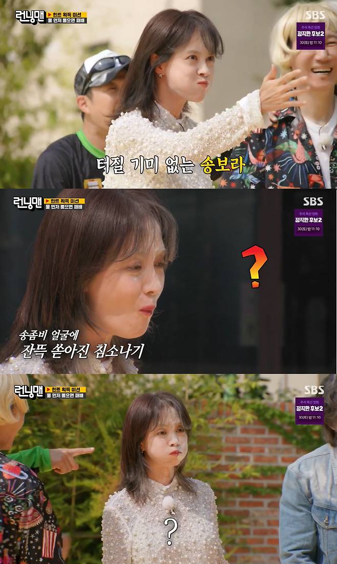 양세찬이 여배우라고 봐주는 것 없이 밀가루를 가득 묻혀 얼굴에 정통으로 때려도 버티며 물을 뿜지 않아 '송좀비' 별명을 획득했다.