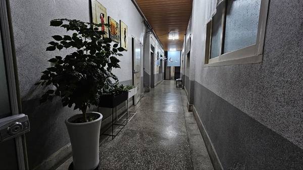 | ▲ 목욕탕 들어가는 내부 통로 출입문을 열면 최측에 식물과 벽면의 그림들이 손님을 맞는다. 정갈하게 잘 관리된 흔적이 여실하다. |