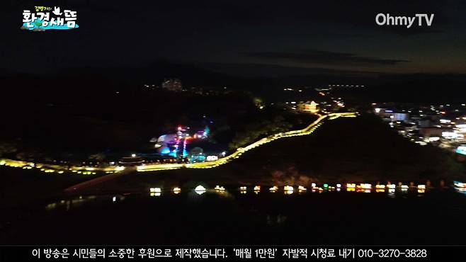 | ▲ [환경새뜸] “고작, 저거 띄우겠다고 난리를 치렀다”...환경단체, ‘대백제전’ 개막식 선전전 23일 저녁, 공주 금강교에서 강에 띄운 20여 개의 유등을 내려다보니 한숨 섞인 탄식이 저절로 터졌다. 시민들이 다리 위에서 찍은 사진의 배경은 대부분 금강 또는 금강신관공원에 설치된 화려한 조명과 대형 돔으로 만들어진 무대였다. 공산성 성곽 밑 금강에 장난감 병정처럼 띄운 유등은 금강교 위에 선 시민들의 눈에는 제대로 들어오지 않는듯했다. ⓒ 김병기 |