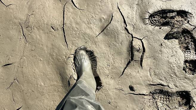| ▲ 백제문화제 기간 공주 고마나루에 작게는 10cm에서 크게는 20cm를 넘는 두께의 펄이 쌓였다. |