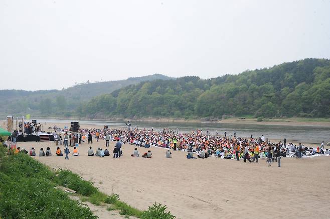 환경단체들이 특히 우려하는 건 20여 일간의 공주보 담수로 인해 심각하게 훼손될 고마나루 명승지의 모래톱이었다. 대백제전 개막식 현장에서 마이크를 든 임도훈 대전충남녹색연합 팀장은 시민들을 향해 이같이 호소했다.
