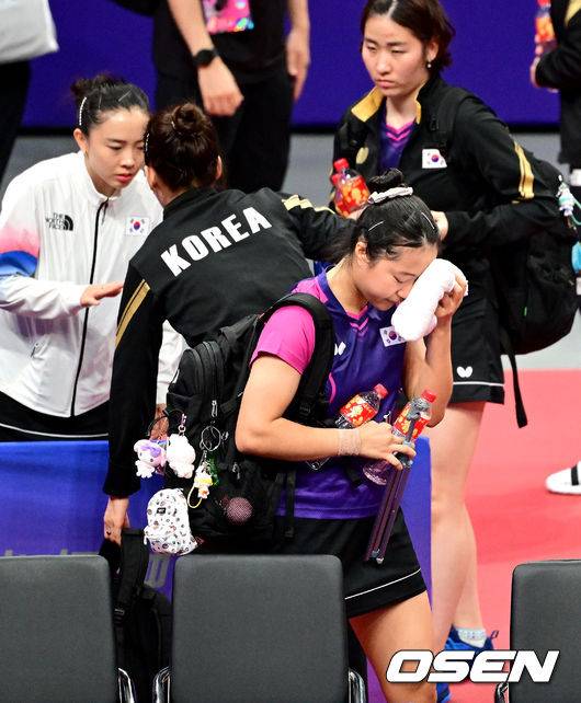 [OSEN=항저우(중국), 최규한 기자] 25일 오후 중국 항저우 궁수 캐널 스포츠파크에서 열린 ‘19회 항저우 아시안게임’ 탁구 여자 단체 준결승 한국과 일본의 경기, 한국이 세트스코어 1-3으로 일본에게 패했다.