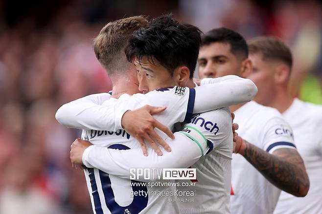 손흥민과 제임스 메디슨이 찰떡호흡을 보이고 있다. 토트넘은 24일(이하 한국시간) 영국 런던 에미레이츠 스타디움에서 열린 2023-2024시즌 잉글랜드 프리미어리그 6라운드 원정 경기에서 아스널과 2-2로 비겼다.