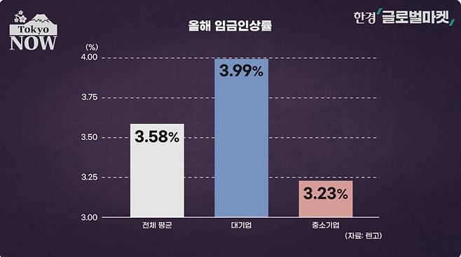 대기업과 중소기업의 차도 크다. 올해 대기업의 임금인상률이 3.99%에 달한 반면 300인 미만 중소기업의 인상률은 3.23%였다.