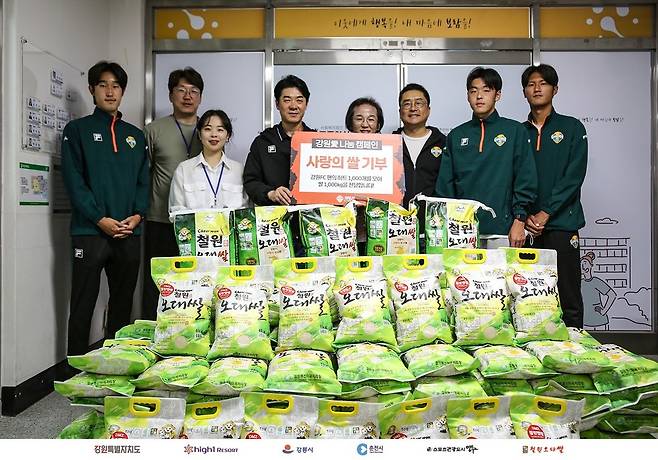 이번 쌀 나눔은 지난 20일 강원FC SNS를 통해 팬들과 함께했다. '강원愛 나눔 캠페인' 게시물에 '좋아요'가 100개씩 모일 때마다 쌀 100kg를 적립했고, 4시간 만에 '좋아요' 1,000개를 돌파하며 쌀 1,000kg 기부가 결정됐다.
