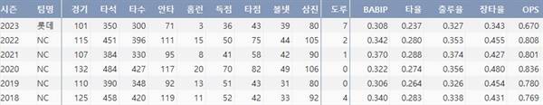 | ▲ 롯데 노진혁의 주요 타격기록(출처: 야구기록실 KBReport.com) |