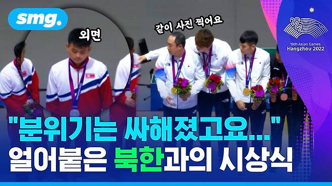 이날 선수들은 첫 '금빛 총성'의 기쁨을 만끽하며 시상대 가장 높은 곳에 올라섰지만, 바로 옆 은메달을 차지한 북한 선수들의 굳어있는 표정과 냉랭한 분위기에 마냥 웃을 수 없었습니다.