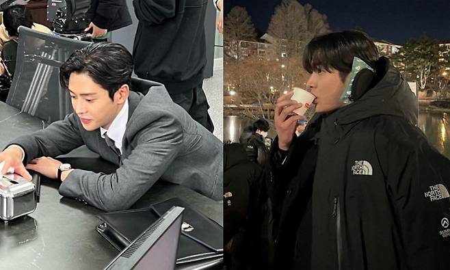 사진 속 로운은 촬영 현장의 이곳저곳을 담아냈다. 로운은 추운 겨울 속 패딩을 두껍게 입고 귀마개와 핫팩까지 총동원해 추위를 막는 모습을 보이는가 하면, 멀끔한 슈트 차림으로 소품에 장난을 치기도 했다.