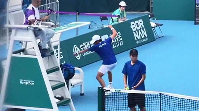 금메달까지 노렸던 개인전에서 조기 탈락하자, 권순우가 화를 참지 못하고 라켓에 분풀이를 하기 시작합니다.