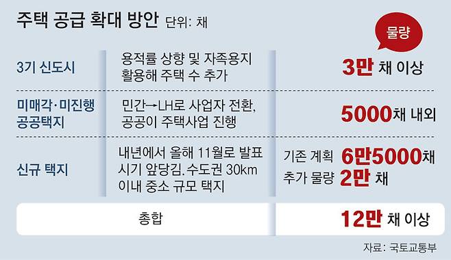 3기 신도시 3만채 등 추가공급… 착공-입주 등 시간표는 못내놔
