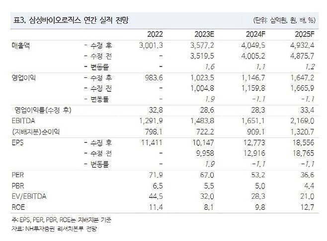 삼성바이오로직스, 3Q 호실적 반등 출발점…목표가는 하향-NH