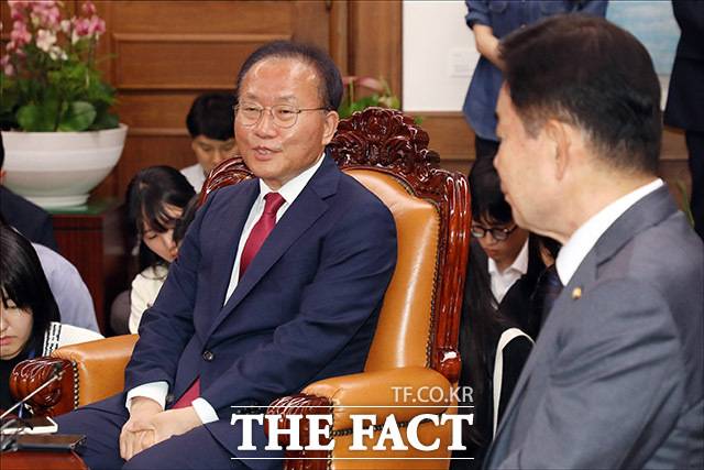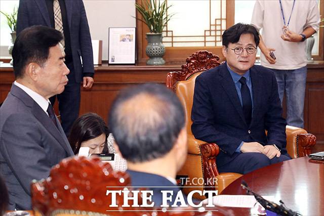 김 의장 주재 회동에서 첫인사를 나눈 윤 원내대표와 홍 원내대표는 이날 본회의를 비롯한 향후 국회 일정 등에 대한 점검 및 상호 협조 등을 논의했다.
