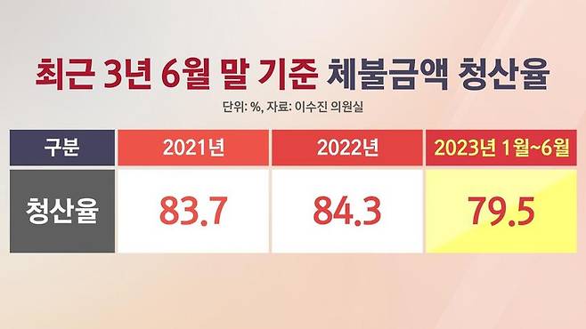 받지 못한 임금을 받아낸 비율을 뜻하는 체불임금 청산율은 올 들어 지난 6월까지 79.5%에 그치고 있습니다.