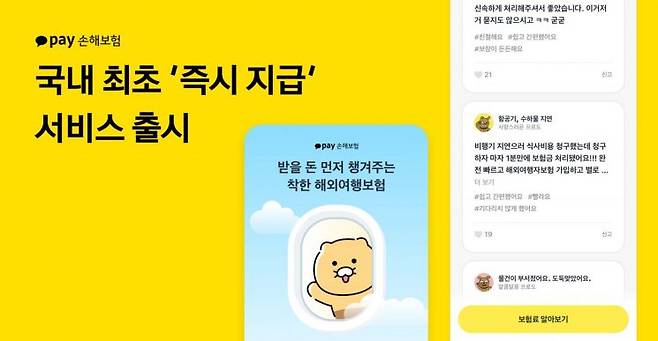 카카오페이손보는 해외여행보험에 이같은 ‘즉시 지급’ 서비스를 국내 최초로 시작했다고 밝혔다.
