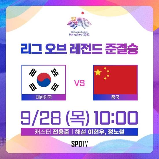 한편, '사실상 결승전'으로 불리는 대한민국과 중국의 준결승은 내일(28일 목요일) 오전 10시 스포티비(SPOTV)에서 TV 채널 독점 생중계된다. PC/모바일 중계는 스포티비 나우(SPOTV NOW)에서 시청할 수 있다. 8강과 마찬가지로 준결승전에서도 전용준 캐스터, '클템' 이현우, '노페' 정노철 해설위원이 중계 마이크를 잡는다.
