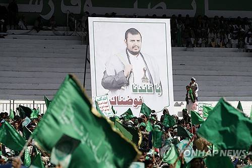 epa10886512 Yemenis gather near a banner depicting the top Houthi leader, Abdul-Malik al-Houthi, during the Mawlid celebration, in Sana'a, Yemen, 27 September 2023. Thousands of Yemenis gathered at al-Sabaeen square in Sana'a to commemorate the birthday of the Prophet Muhammad, known as Mawlid, which is annually celebrated by many Muslim countries on the 12th day of Rabi al-Awwal, the third month of the Islamic calendar. The Prophet Muhammad was born in Mecca in Saudi Arabia in 570 AD. EPA/YAHYA ARHAB