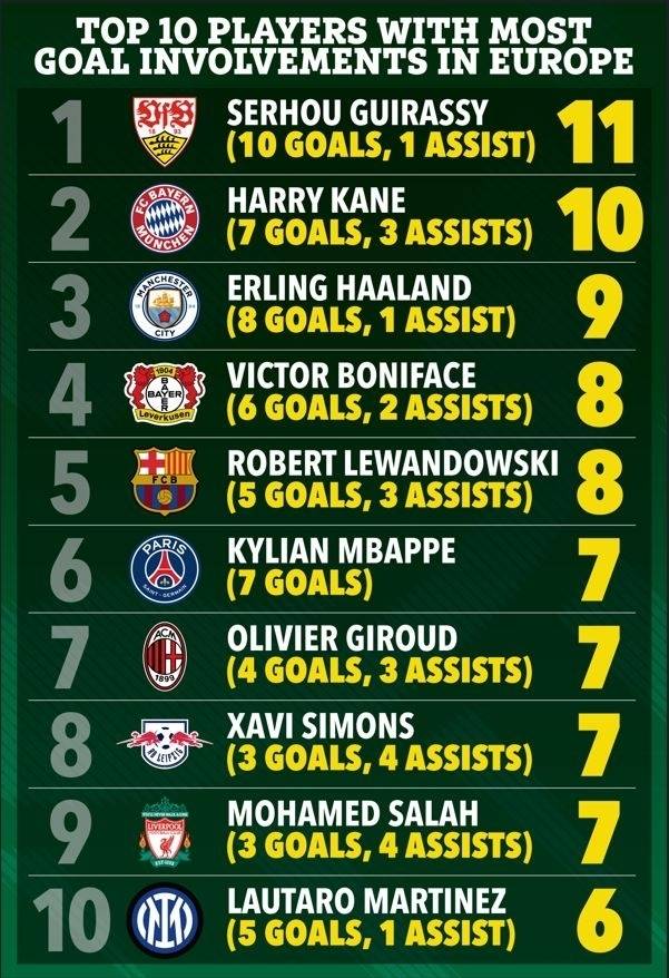 영국 언론들은 27일 ‘잘 알려지지 않은 스타가 케인과 홀란드를 제치고 득점 1위에 오르면서 유럽에서 가장 많은 골 관련 선수 상위 10명이 공개됐다’고 전했다.