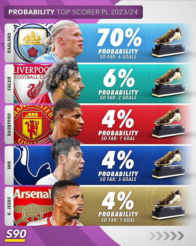 축구 통계 사이트 ‘livescore’는 28일 “손흥민이 엘링 홀란드에게 도전해 득점왕을 거머쥘 수 있을까?”라는 주제로 조명했다.