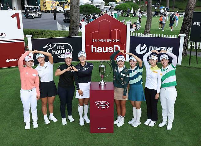 [서울=뉴시스] 최동준 기자 = 28일 경기 파주 서월밸리CC에서 열린 '대보 hausD오픈' 공식 포토콜에서 황유민, 김민별, 김윤교, 김지현, 송가은, 박민지, 이예원, 박지영이 포즈를 취하고 있다. (사진=대보hausD오픈 조직위원회 제공) 2023.09.28. photo@newsis.com *재판매 및 DB 금지
