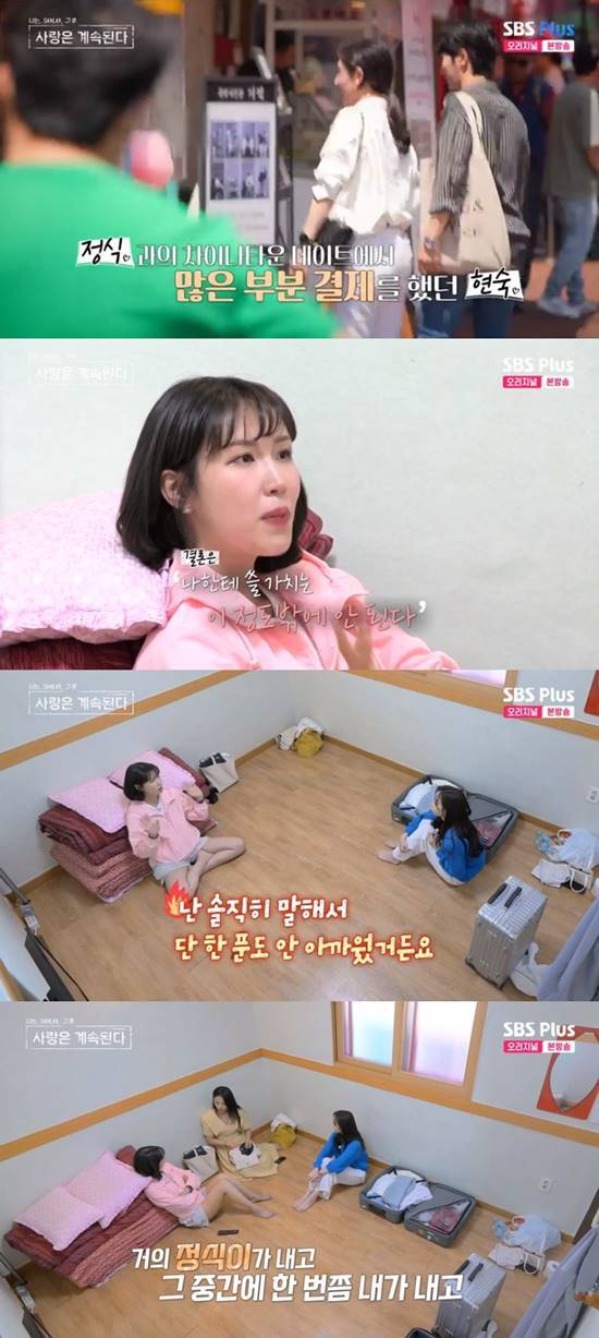 28일 방송된 SBS Plus '나는 SOLO, 그 후 사랑은 계속된다'(이하 '나솔사계')에서는 9기 현숙이 1기 정식과의 데이트에서 찝찝했던 점이 있다고 3기 정숙에게 털어놓는 장면이 전파를 탔다.