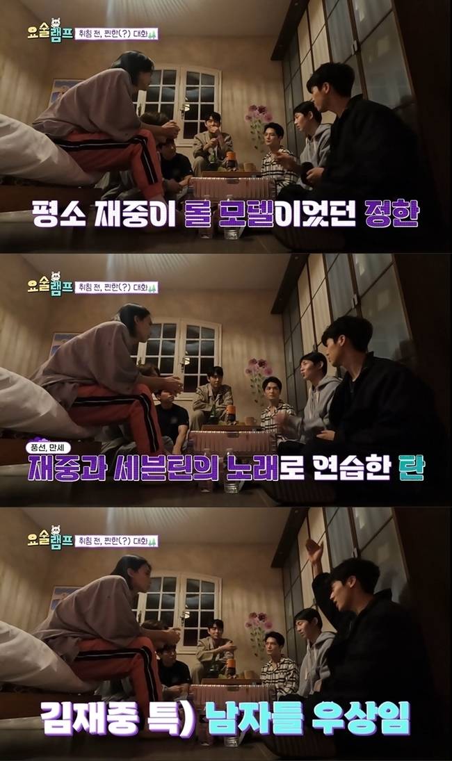 가장 먼저 세븐틴 정한은 “일본에서 김재중처럼 되고 싶다고 생각했다”고 전하며 김재중이 롤모델임을 밝혔다. 이에 김재중 역시 "평소 세븐틴을 응원하고 있었다”고 화답해 훈훈한 분위기를 연출했다. 정한은 “김재중과 함께 프로그램을 하게 될 줄 몰랐다”라며 말문을 열었고, 강희 역시 "다 같은 마음이지 않았을까?”라며 동조했다. 동생들은 학창시절 자신들의 우상이었던 김재중을 향한 팬심을 드러내 김재중을 흐뭇하게 만들었다.