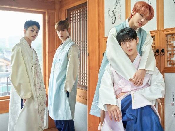 특히 훈훈하면서도 소년미 넘치는 비주얼 속 4인 4색의 매력이 돋보인다. 또한 이들의 한복 차림은 레드 톤 헤어와 밝은 브라운 헤어 컬러에도 트렌디하게 어울리면서 시선을 사로잡았다.