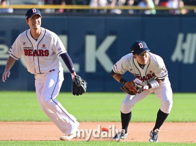 [MD포토] 허경민-김재호 '두산 내야를 책임지는 베테랑 수비수'
