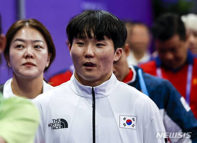 [항저우=뉴시스] 정병혁 기자 = 29일 오후 중국 항저우 황롱스포츠센터 체육관에서 열린 2022 항저우 아시안게임 기계체조 남자 도마 결승 경기에서 대한민국 신재환이 경기장을 나서고 있다. 신재환은 이날 4위를 기록했다. 2023.09.29. jhope@newsis.com
