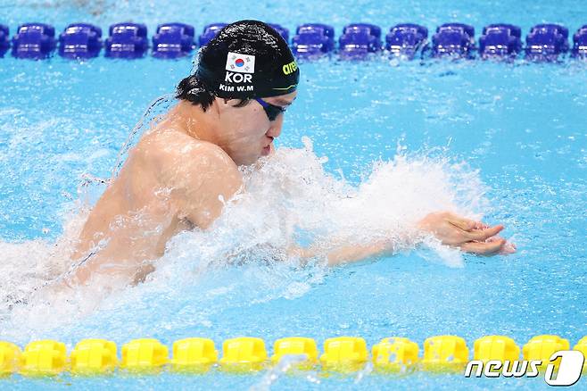 (항저우(중국)=뉴스1) 신웅수 기자 = 최동열이 29일 중국 항저우 올림픽 스포츠센터 아쿠아틱스포츠 아레나에서 열린 2022 항저우 아시안게임 남자 평영 50m 결선에서 역영하고 있다.