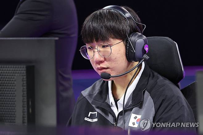 (항저우=연합뉴스) 신현우 기자 = 29일 중국 저장성 항저우 e스포츠 센터에서 열린 제19회 항저우 아시안게임 e스포츠 리그 오브 레전드(LoL) 결승에서 대만과의 2세트를 앞두고 '룰러' 박재혁이 경기를 준비하고 있다. 2023.9.29