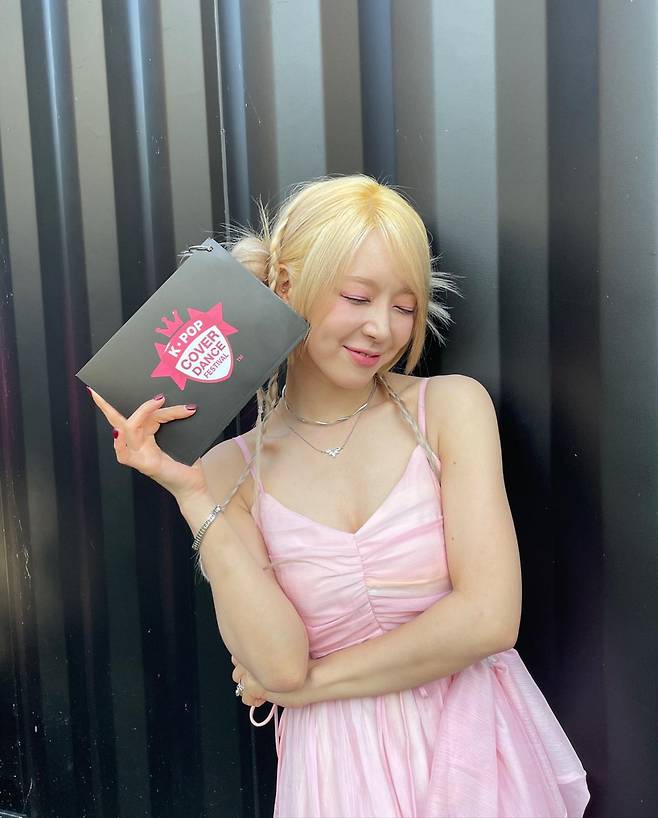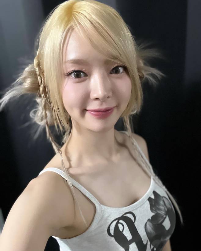 사진에는 금발을 양쪽으로 땋아 올린 헤어스타일을 한 초아의 모습이 담겼다.