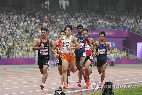 Runners compete during the men's 1500-meter heat at the 19th Asian Games in Hangzhou, China, Saturday, Sept. 30, 2023. (AP Photo/Lee Jin-man)