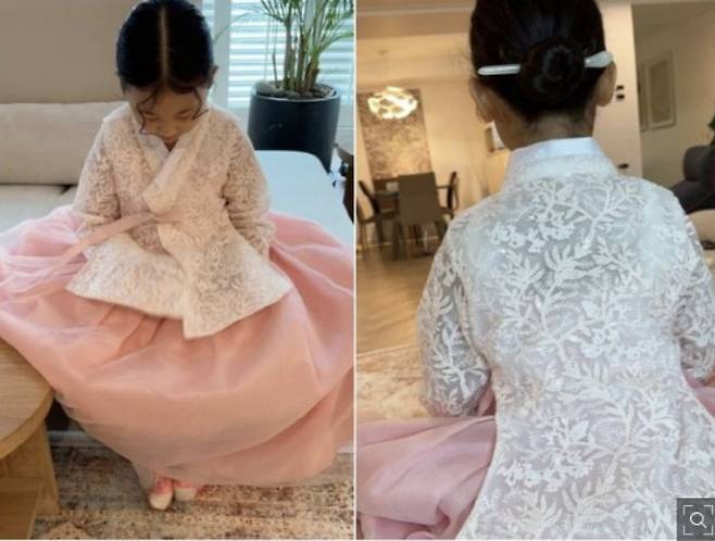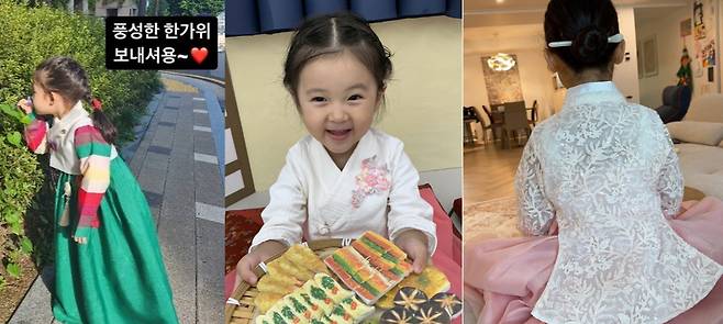 가수 백지영은 외동딸의 단아한 한복 사진으로 즐거운 추석을 인증했다.