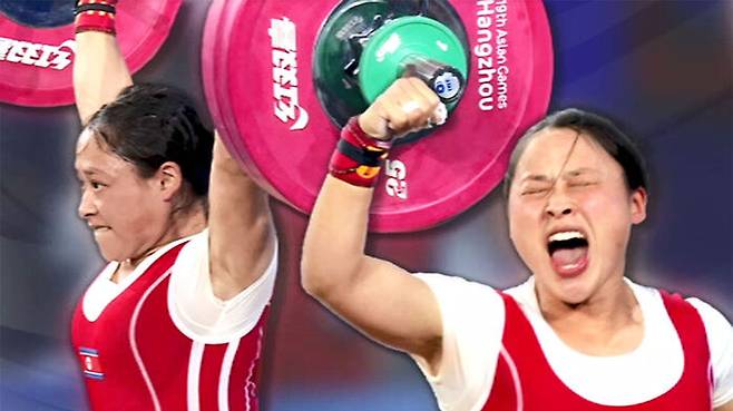 북한 여자 역도 49kg급에 출전한 북한의 리성금 선수가 용상과 합계에서 세계신기록을 세우며 아시안게임 2회 연속 금메달을 차지했습니다.