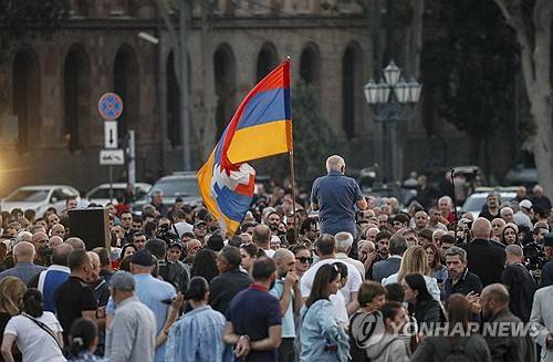 epa10892118 A Nagorno-Karabakh flag waves as Armenian anti-government demonstrators attend an opposition rally demanding the resignation of Prime Minister Pashinyan due to the Nagorno-Karabakh crisis, in downtown Yerevan, Armenia, 30 September 2023. Azerbaijan on 19 September 2023 launched a brief military offensive on the contested region of Nagorno-Karabakh, a breakaway enclave that is home to some 120,000 ethnic Armenians. Following a ceasefire agreed on 20 September 2023, Azerbaijan opened all checkpoints with Armenia for the unimpeded exit of civilians from the disputed territory. The Armenian government announced the evacuation of more than 100,000 local residents from Nagorno-Karabakh, and a humanitarian center has been set up in the village of Kornidzor near the so-called Lachin corridor, the main route between Armenia and the breakaway region. EPA/ANATOLY MALTSEV