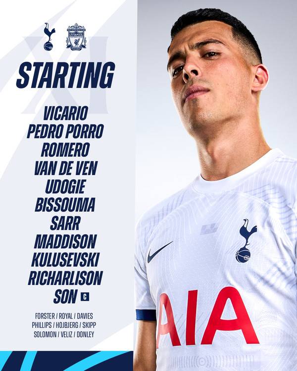 경기를 앞두고 토트넘 선발 라인업이 공개됐다. 손흥민, 히샤를리송, 데얀 쿨루세프스키, 제임스 메디슨, 이브 비수마, 파페 사르, 데스티니 우도기, 미키 판더펜, 크리스티안 로메로, 페드로 포로, 굴리엘모 비카리오가 이름을 올렸다. 지난 아스널전과 비교했을 때 브레넌 존슨이 부상으로 빠지고 히샤를리송이 톱으로 투입됐다.
