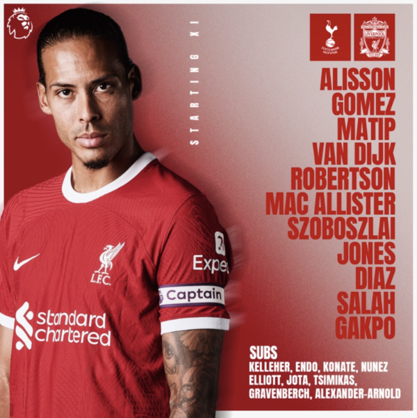 토트넘에 맞서는 리버풀 선발 라인업도 공개됐다.