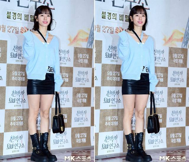 '천박사 퇴마 연구소: 설경의 비밀' VIP 시사회걸그룹 '우주소녀'의 보나가 카디건과 미니스커트, 그리고 워커로 가을 패션을 선보였습니다.