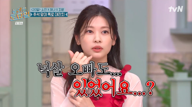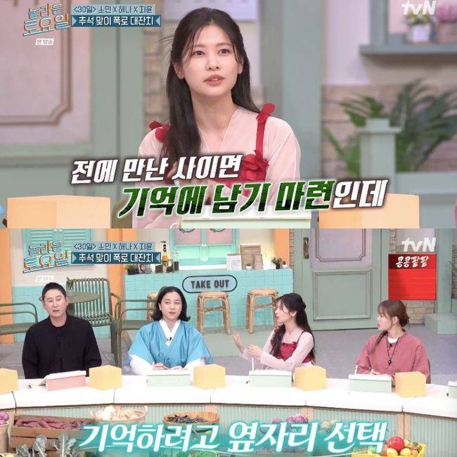 30일 방송된 tvN 예능 ‘놀라운 토요일’(이하 ‘놀토’)에서는 영화 ‘30일’의 정소민, 송해나, 엄지윤이 게스트로 등장했다. ‘놀토’ 두 번째 방문인 정소민은 넉살 옆자리에 앉은 반전 이유를 설명해 웃음을 안겼다.