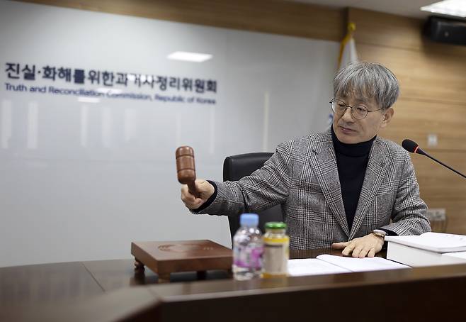 | ▲ 김광동 진실·화해를 위한 과거사 정리위원회 위원장이 지난 2월 7일 오후 서울 중구 진실화해위에서 열린 51차 전체위원회에서 의사봉을 두드리고 있다. |