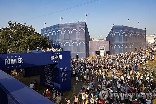 epa10894292 Spectators atttend the 2023 Ryder Cup golf tournament in Guidonia, near Rome, Italy, 01 October 2023. EPA/FABIO FRUSTACI