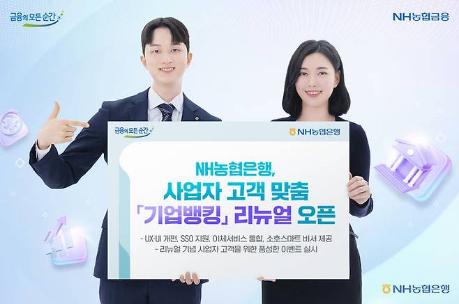 [서울=뉴시스]이주혜 기자 = NH농협은행이 사업자 고객의 니즈를 반영하여 직관성과 편의성을 높인 NH기업인터넷뱅킹과 NH기업스마트뱅킹 플랫폼을 개편했다.