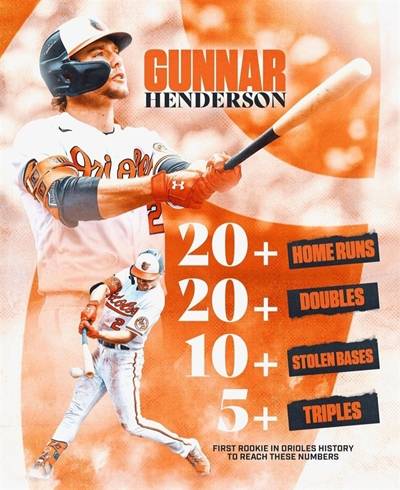 | ▲ 2023시즌 아메리칸리그 신인왕 등극이 유력한 볼티모어의 내야수 거너 헨더슨(출처: 볼티모어 구단 공식 SNS) |