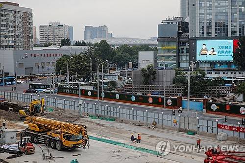 epa10895207 Workers at a construction site in Beijing, China, 02 October 2023. The World Bank downgraded its growth forecast for developing East Asia and Pacific, citing a sluggish China and global demand amid still-high interest rates and dampened trade. It now expects developing economies in East Asia and the Pacific to grow 5 percent in 2023, according to its report published on 02 October. EPA/WU HAO