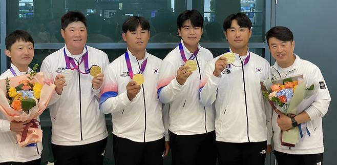 [서울=뉴시스] 김선웅 기자 = 2022 항저우 아시안게임 골프 대표팀 선수들이 2일 인천국제공항을 통해 귀국하고 있다. 골프 대표팀은 금1, 은2, 동1개의 메달을 획득했다. (사진=대한골프협회 제공) 2023.10.02. photo@newsis.com *재판매 및 DB 금지