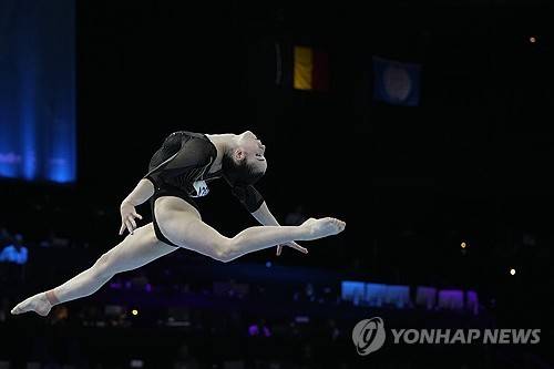 Canada's Ava Stewart competes on the floor during the Women's Qualifications at the Artistic Gymnastics World Championships in Antwerp, Belgium, Monday, Oct. 2, 2023. The event will take place until Sunday, Oct. 8. (AP Photo/Virginia Mayo)