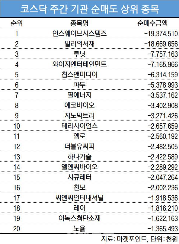 코스닥 주간 기관 순매도 1위 ‘인스웨이브시스템즈’